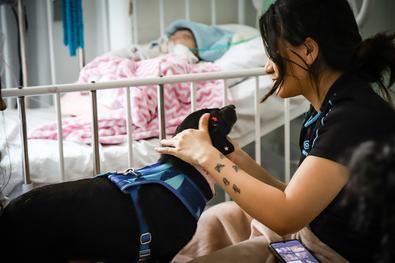 Porto Alegre, RS, 16/10/2025Hospital Materno Infantil Presidente Vargas (HMIPV) recebe os cães e tutores da Fundação Bicho Terapia. Foto: Cristine Rochol/PMPA