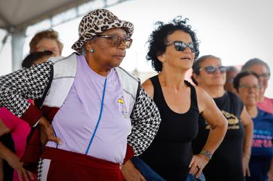 Porto Alegre, RS, 22/11/2025 Em alusão ao Dia da Consciência Negra, celebrado em 20 de novembro, a Secretaria Municipal de Saúde realizou um aulão gratuito de atividades físicas, conduzido pelos professores do Projeto Viver Mais e Melhor e aberto a toda a população. A atividade foi realizada na Esplanada da Restinga (Estr. João Antônio da Silveira, 2359), onde também ocorre a 51ª Semana da Restinga. Foto: Cristine Rochol/PMPA