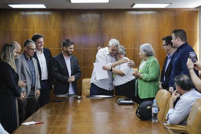 Porto Alegre, RS, Brasil - 24/11/2025 - Sanção de Lei que autoriza o Executivo Municipal a proceder à baixa dogravame no traçado viário da Avenida Guaíba, do nº 3.052 aonº 4.022, Vila dos Pescadores, no Bairro Assunção. Local: 17º andar - Sala de reuniões, Centro Administrativo Municipal. Fotos: Cesar Lopes/ PMPA
