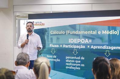 Porto Alegre, RS, Brasil, 18/03/2026: Com as presenças do prefeito, Sebastião Melo, e do secretário municipal de Educação, Leonardo Pascoal, a Secretaria Municipal de Educação (Smed) apresentou, nesta quarta-feira, 18, os resultados da primeira edição do Índice de Desenvolvimento da Educação de Porto Alegre (Idepoa). A coletiva de imprensa foi realizada às 9h, na Escola de Formação Continuada da Educação, localizada na rua João Manoel, 90, no bairro Centro Histórico. Foto: Alex Rocha/PMPA
