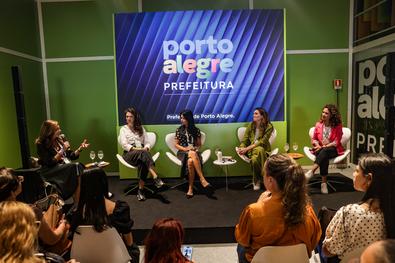 Porto Alegre, RS, 26/03/2026 - Painel: A força da liderança feminina e seu impacto no empreendedorismo e inovação no POA STAGE no South Summit Brazil 2026. Mediação: Carla Villwock (Programa de Empreendedorismo Feminino/Gabinete de Inovação/PMPA). Painelistas: Liana Rigon; Lauren Momback - Programa Avança Mulher Empreendedora/Presidente JUCISRS; Gabriella Bordasch - DaTerra Studio; Danielle Cosme - Programa EVA/Clã Conexões/VP Associação Gaúcha de Startups. Fotos: Pedro Piegas / PMPA