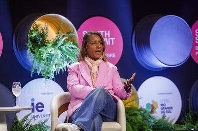 Porto Alegre, RS, 26/03/2026 - Painel: A nova fronteira da educação - Felipe Amaral (Caldeira) e Justina Nixon (IBM), na Arena Stage, no South Summit Brazil 2026. Fotos: Pedro Piegas / PMPA