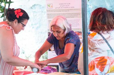 Porto Alegre, RS 08/03/2023: A Feira de Oportunidade da Ilha da Pintada reuniu mais de 10 expositoras de produtos artesanais da região, durante a quarta-feira (8), dia Internacional da Mulher. A Ação Comunitária promovida pelo Centro de Referência de Assistência Social (CRAS) Ilhas, teve apoio da Rede Parceira da Fundação de Assistência Social e Cidadania (FASC), como a Rede Maristas, Associação dos Amigos, Artesãos e Pescadores da Ilha da Pintada (AAAPIP), Unidos do Pôr do Sol, Sabiá, do Instituto Embelleze, Subprefeitura e Guarda Municipal. Foto: Talles Kunzler/FASC PMPA