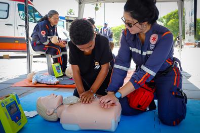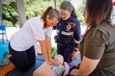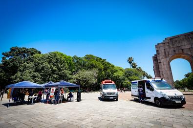 Porto Alegre, RS, 29/11/2025 Para encerrar as comemorações dos 30 anos do Serviço de Atendimento Móvel de Urgência (Samu), a equipe promoveu, neste sábado (29), no Parque Farroupilha (Redenção), orientações e demonstrações práticas sobre como reconhecer uma parada cardiorrespiratória e os sinais do acidente vascular cerebral (AVC). O evento ocorreu em frente ao Monumento ao Expedicionário. Foto: Cristine Rochol/PMPA