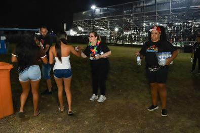 Porto Alegre, RS, 27/02/2026 O Carnaval de Porto Alegre no Complexo Cultural do Porto Seco contou com uma estrutura completa de saúde para o público. Além de uma UPA, equipes volantes realizaram ações preventivas com distribuição de materiais sobre dengue e ISTs, entrega de preservativos, lubrificantes, autotestes de HIV e hidratação. O destaque ficou para o Bloco da Saúde, que levou cerca de 250 servidores à avenida com samba-enredo próprio e a presença ilustre do Zé Gotinha e sua família. Foto: Cristine Rochol/PMPA