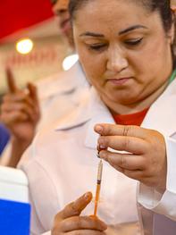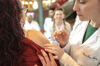 Porto Alegre, RS, Brasil, 08/10/2025: Na tarde desta quarta-feira (08), seguindo a Campanha Nacional de Multivacinação para menores de 15 anos, que vai até o dia 31 de outubro, ocorreu, no Mercado Público Central, no bairro Centro Histórico, uma ação, onde também foram oferecidas todas as vacinas que compõem o calendário de rotina definido pelo Programa Nacional de Imunizações, de acordo com a faixa etária. Também estão disponíveis doses de vacinas oferecidas em outras campanhas, como a vacina da gripe. Foto: Alex Rocha/PMPA