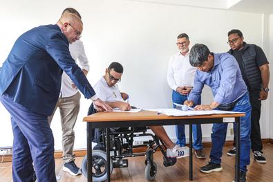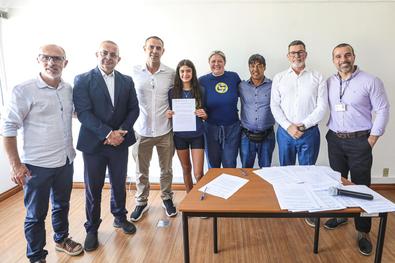 Porto Alegre, RS, Brasil, 12/12/2025: Na tarde desta sexta-feira (12), foi realizado, no auditório do 18º andar do Centro Administrativo Municipal Guilherme Socias Villela (CAM), o ato de assinatura do com os atletas contemplados no programa Bolsa-Atleta Municipal. Foto: Alex Rocha/PMPA