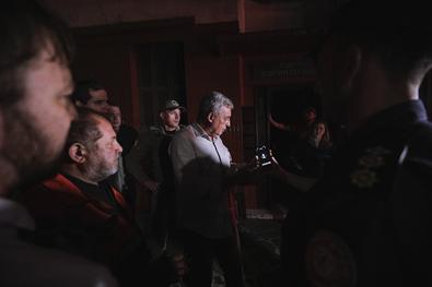 Porto Alegre, RS, Brasil - 03/10/2025 - Prefeito Sebastião Melo junto das equipes de segurança e saúde da prefeitura de Porto Alegre, prestam assistência às vitimas do incêndio em ônibus no Centro Histórico. Local: Rua Espírito Santo. Fotos: Cesar Lopes/ PMPA