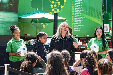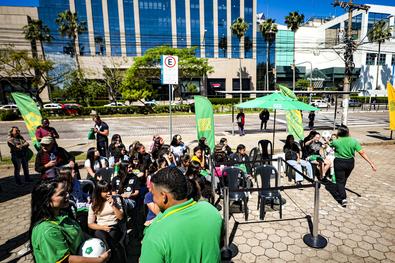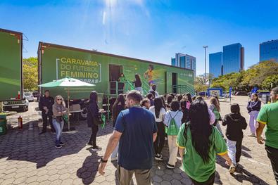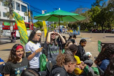 Porto Alegre, RS, Brasil, 07/10/2025: Entre esta segunda-feira, 6, e o dia 12 de outubro, Porto Alegre recebe a Caravana do Futebol Feminino. A exposição itinerante, com visitação gratuita, ficará instalada no estacionamento do Parque Marinha do Brasil, em frente ao Shopping Praia de Belas (avenida Borges de Medeiros, 2651). A ação é uma parceria entre a Prefeitura de Porto Alegre, por meio da Secretaria Extraordinária da Copa do Mundo Feminina de Futebol 2027 (Secopa), e a Petrobras. Foto: Alex Rocha/PMPA