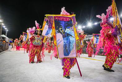 Porto Alegre, RS, Brasil, 27/02/2026: A Unidos de Vila Isabel levou para a avenida no Carnaval de 2026 o enredo Ninguém Pode Roubar os Nossos Sonhos, uma homenagem ao ator e multiartista Ailton Graça. A escola contou a trajetória do menino da periferia que, guiado pela fé, pela ancestralidade e pela arte, transformou sonhos em conquistas no teatro, no cinema, na televisão e no carnaval. Foto: Alex Rocha/PMPA