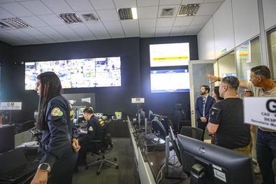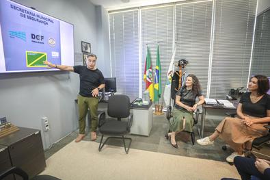 Palavra-chave: Centro Integrado de Coordenação e Serviços da Cidade de Porto Alegre (CEIC), prefeita em exercício, Comandante Nádia, Secretário municipal da Segurança, Alexandre Augusto Aragon, Reunião