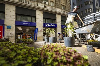 Porto Alegre, RS, Brasil, 21/10/2025: Início do plantio de folhagens no Quadrilátero Central, na manhã desta terça-feira (21). Foto: Alex Rocha/PMPA