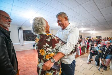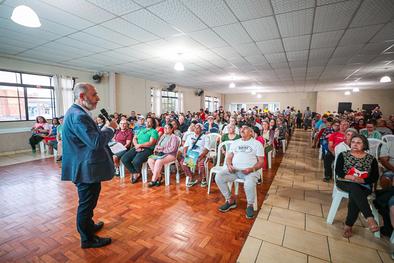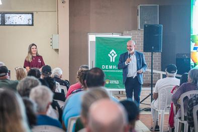 Porto Alegre, RS, Brasil, 15/10/2025: O Departamento Municipal de Habitação (Demhab) realizou nesta quarta-feira, 15, a maior entrega de matrículas do ano, beneficiando 240 moradores no bairro Santa Rosa de Lima, na Zona Norte da Capital. O evento marca o início do processo de regularização fundiária urbana (Reurb) na localidade. A cerimônia aconteceu a partir das 18h30, no Salão Paroquial da Igreja Santa Rosa de Lima, na avenida Bernardino de Oliveira Paim, 82, e contou com as presenças do prefeito Sebastião Melo e do diretor-geral do Demhab, André Machado. Foto: Alex Rocha/PMPA