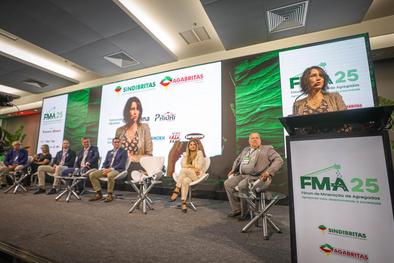 Porto Alegre, RS, Brasil, 12/11/2025: A prefeita em exercício, Comandante Nádia, participou, na manhã desta quarta-feira (12), no Centro de Eventos da FIERGS, da cerimônia de abertura do Fórum de Mineração de Agregados (FMA). Foto: Alex Rocha/PMPA