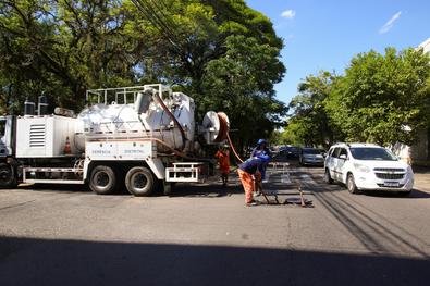 Porto Alegre, RS. 05/12/2025. DMAE Realiza limpeza de rede na rua João Inácio, no bairro Navegantes.