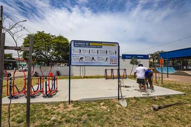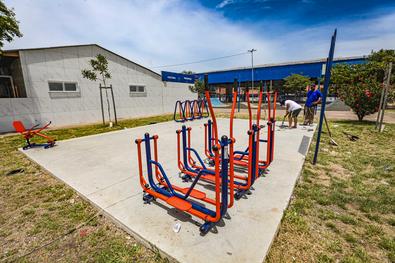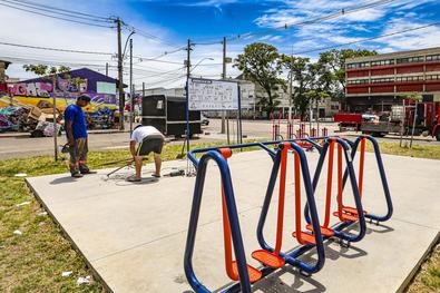 Porto Alegre, RS, Brasil, 15/12/2025: Nesta segunda-feira (15), a secretaria Municipal de Serviços Urbanos (SMSURB), conclui a instalação da nova academia ao ar livre, no Loteamento Santa Terezinha. Foto: Alex Rocha/PMPA