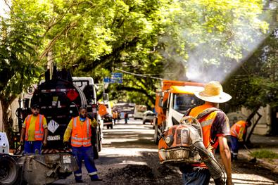 Porto Alegre, RS, Brasil, 06/01/2026: Os serviços de conservação de vias da Secretaria Municipal de Serviços Urbanos (SMSUrb) ocorrem em todas as regiões da Capital, até a sexta-feira, 9. Nas imagens, execução do serviço na ruas Antão de Farias e Tomaz Flores, no bairro Bom Fim. Foto: Alex Rocha/PMPA