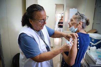 Porto Alegre, RS 10/04/2025 Campanha nacional de vacinação contra a gripe (Influenza). Vacinação para os grupos prioritário no Centro de Saúde Modelo. Foto: Cristine Rochol/PMPA