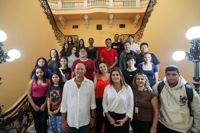Porto Alegre, RS, 13/03/2026 - Jovens participantes do Programa Partiu Futuro Reconstrução, projeto do governo do Estado em parceria com o Município são recebidos pelo Secretário de Administração e Patrimônio Élvio Santos. Fotos: Pedro Piegas / PMPA