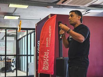 Porto Alegre, RS, Brasil, 21/03/2026: Cinquenta empreendedores de territórios periféricos de Porto Alegre foram selecionados para uma capacitação gratuita do programa HackaPOA, iniciativa da prefeitura que busca ampliar o acesso ao ecossistema de inovação e levar representantes das comunidades a um dos maiores eventos do setor na América Latina: o South Summit Brazil. A formação foi realizada neste sábado, 21, no Co.nectar Hub, no Centro Histórico, com conteúdos voltados à inovação, networking e identificação de oportunidades dentro do ecossistema empreendedor. Foto: Giulian Serafim/PMPA