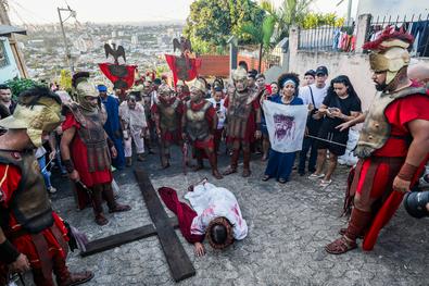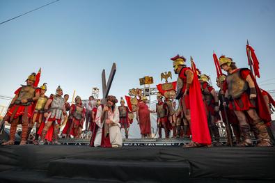 Porto Alegre, RS, 03/04/2026 - Nesta Sexta-Feira Santa, 3 de abril, ocorreu a 67ª encenação da Paixão de Cristo do Morro da Cruz, Zona Leste da Capital. A apresentação começou às 15h30, em frente ao Santuário São José do Murialdo (rua Vidal de Negreiros, 550 - São José), e reuniu artistas profissionais e moradores da comunidade em uma das mais tradicionais manifestações religiosas e culturais da cidade. Fotos: Pedro Piegas / PMPA