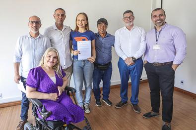 Porto Alegre, RS, Brasil, 12/12/2025: Na tarde desta sexta-feira (12), foi realizado, no auditório do 18º andar do Centro Administrativo Municipal Guilherme Socias Villela (CAM), o ato de assinatura do com os atletas contemplados no programa Bolsa-Atleta Municipal. Foto: Alex Rocha/PMPA