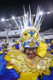 Porto Alegre, RS, Brasil, 27/02/2026: A União da Vila do IAPI, que entrou na avenida nesta sexta-feira, 27, levou para a avenida no Carnaval de 2026 o enredo Umbanda! Luz, Amor, Reinos e Planos!, uma celebração da religiosidade afro-brasileira e de sua importância na formação da identidade nacional. A escola contou a trajetória dessa fé nascida do sincretismo entre tradições africanas, indígenas, cristãs e espíritas, destacando sua missão de promover a caridade, a evolução espiritual e o respeito à diversidade por meio da conexão entre o mundo físico e os diferentes planos espirituais. Foto: Alex Rocha/PMPA