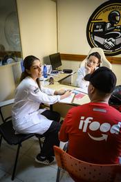 Porto Alegre, RS, 13/04/2026 Vacinas contra influenza e hepatite b, testagem rápida para HIV, sífilis e hepatites, orientações de primeiros socorros e doenças transmissíveis, foram levadas a motoboys nesta segunda-feira, 17, no Pit Stop da Saúde. A ação conjunta da Secretaria Municipal de Saúde com o Sindicato dos Motociclistas Profissionais do Rio Grande do Sul foi na sede do sindicato, na rua Itaboraí, 1090, no Jardim Botânico.