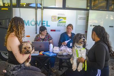Porto Alegre, RS, Brasil, 09/10/2025: Mais de 100 animais foram atendidos na Ação da Unidade Móvel de Saúde Animal, na manhã desta quinta-feira, 9. A iniciativa é promovida pela Prefeitura de Porto Alegre, por meio do Gabinete da Causa Animal (GCA), em parceria com a Secretaria Municipal de Governança Local e Coordenação Política (SMGOV), por meio das subprefeituras. A equipe do GCA, com apoio de alunos e docentes da Faculdade de Veterinária da UFRGS, atendeu na Região Centro-Sul de Porto Alegre atendendo tutores de cães e gatos dos bairros Vila Nova, Cavalhada, Campo Novo, Teresópolis, Nonoai e Camaquã. Foto: Evelize Fabricio/GCA