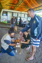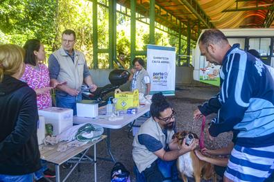 Porto Alegre, RS, Brasil, 09/10/2025: Mais de 100 animais foram atendidos na Ação da Unidade Móvel de Saúde Animal, na manhã desta quinta-feira, 9. A iniciativa é promovida pela Prefeitura de Porto Alegre, por meio do Gabinete da Causa Animal (GCA), em parceria com a Secretaria Municipal de Governança Local e Coordenação Política (SMGOV), por meio das subprefeituras. A equipe do GCA, com apoio de alunos e docentes da Faculdade de Veterinária da UFRGS, atendeu na Região Centro-Sul de Porto Alegre atendendo tutores de cães e gatos dos bairros Vila Nova, Cavalhada, Campo Novo, Teresópolis, Nonoai e Camaquã. Foto: Evelize Fabricio/GCA