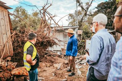 Porto Alegre, RS - 07/03/2022: Prefeito, Sebastião Melo, visita famílias da Vila dos Sargentos afetadas pelo forte temporal de ontem, acompanhado de gestores do municípios. Foto: Mateus Raugust/PMPA