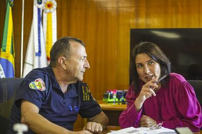 Porto Alegre, RS, Brasil, 10/11/2025: A prefeita em exercício, Comandante Nádia, participou, tarde desta segunda-feira (10), de reunião com o diretor de Operações da Empresa Pública de Transporte e Circulação (EPTC), Carlos Pires. Foto: Alex Rocha/PMPA