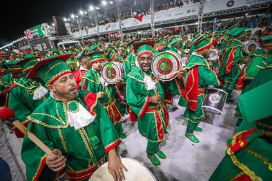 Porto Alegre, RS, Brasil, 01/03/2026: A S.R.B. Estado Maior da Restinga participou do Carnaval de Porto Alegre na madrugada deste domingo (01). A escola apresentou o enredo Restinga, o canto de todos os povos, que reconta a trajetória do bairro, desde a sua ocupação por famílias removidas de diversas áreas de Porto Alegre até a transformação em um polo de cultura e resistência. A narrativa exaltou a superação de um povo que, diante do esquecimento social, construiu com as próprias mãos uma cidade vibrante. Foto: Alex Rocha/PMPA
