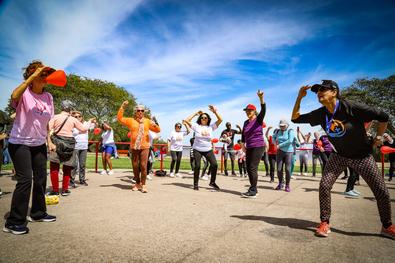 Porto Alegre, RS, 27/09/2025 Em alusão ao Dia Mundial do Coração, celebrado em 29 de setembro, a Secretaria Municipal de Saúde realizou um aulão gratuito de atividades físicas, conduzido pelos professores do Projeto Viver Mais e Melhor e aberto a toda a população. O encontro aconteceu neste sábado, 27, na Orla de Ipanema (avenida Guaíba, 12.970). Foto: Cristine Rochol/PMPA