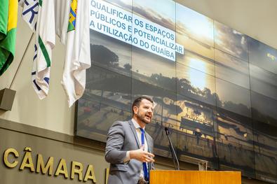 Porto Alegre, RS, Brasil - 08/10/2025: O Chat PDPOA está no ar desde esta quarta-feira, 8. O anúncio foi feito pelo secretário do Meio Ambiente, Urbanismo e Sustentabilidade (Smamus), Germano Bremm, durante apresentação das propostas do Plano Diretor aos vereadores no plenário da Câmara Municipal.Foto: Guilherme Vivan/CMPA/ PMPA