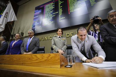 Porto Alegre, RS, Brasil - 05/01/2026 - Posse do Presidente da CMPA. O vereador Moisés Barboza (PSDB) foi eleito presidente da Câmara Municipal de Porto Alegre para o ano de 2026. Local: Câmara Municipal de Porto Alegre, Av. Loureiro da Silva, 255 - Centro Histórico. Fotos: Cesar Lopes/ PMPA.