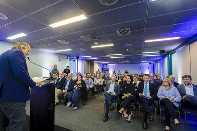 Porto Alegre, RS, Brasil, 10/10/2025: O Manifesto Deep Tech foi lançado nesta sexta-feira, 10, durante evento realizado na Federação das Indústrias do Estado do Rio Grande do Sul (Fiergs). A partir da iniciativa, as instituições pretendem fomentar a inovação e o desenvolvimento sustentável. O encontro reuniu também especialistas e interessados no tema, discutindo o futuro da inovação. Foto: Alex Rocha/PMPA