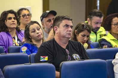 Porto Alegre, RS, Brasil, 24/9/2025: A Empresa Pública de Transporte e Circulação (EPTC) esteve presente no 8º Seminário Nacional de Trânsito, promovido pelo Núcleo Universitário Interdisciplinar de Trânsito da UFRGS (Nuitran), nesta quarta-feira, 24. Com o tema “Desacelere, seu bem maior é a vida”, o encontro reuniu especialistas e instituições parceiras para debater os desafios da mobilidade segura e a importância da redução da velocidade nas cidades. O evento ocorreu no Centro Cultural da UFRGS (Auditório Araucária - rua Engenheiro Luiz Englert, 333, bairro Farroupilha). Foto: Alex Rocha/PMPA