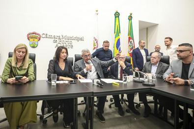 Porto Alegre, RS, Brasil, 15/10/2025: Nesta quarta-feira, 15, às 13h, o prefeito Sebastião Melo protocolou na Câmara Municipal o projeto da Lei Orçamentária Anual (LOA) para 2026. Foto: Alex Rocha/PMPA
