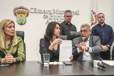 Palavra-chave: Prefeito de Porto Alegre, Sebastião Melo, Vice-prefeita de Porto Alegre, Betina Worm, Comandante Nádia, Presidente da Câmara de Vereadores, Entrega da Lei Orçamentária Anual (LOA) 2026